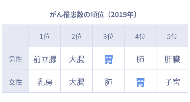 胃がんは、男性では3番目、女性では4番目に多いがんです。