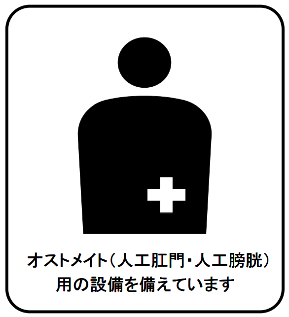 このマークはオストメイト(ストーマ保有者)用のトイレなどの設備があることを示しています。