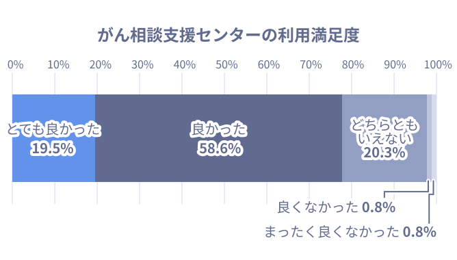 「とても良かった(19.5%)」「良かった(58.6%)」を合わせると、78.1%の方が良かったと回答しています。実際に利用した方には、がん相談支援センターの満足度は高いと言えるでしょう。